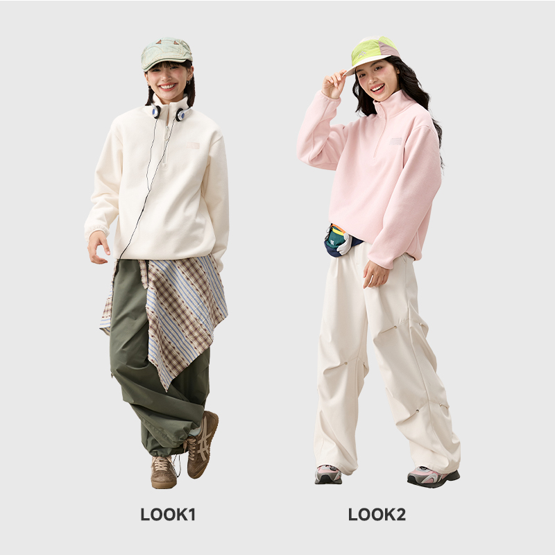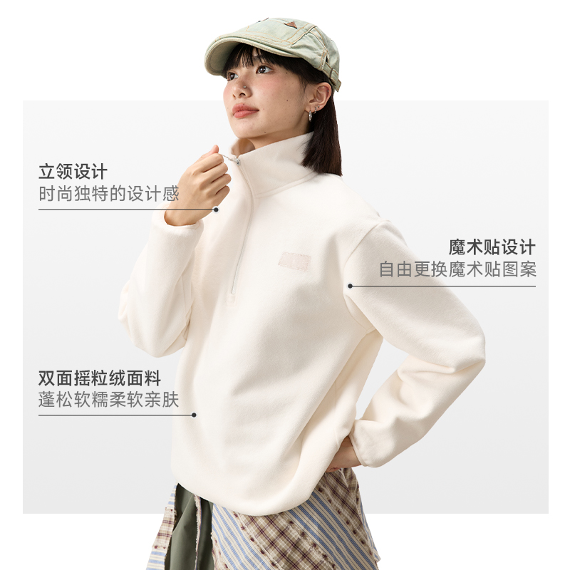 回力半拉摇粒绒卫衣女2025新款