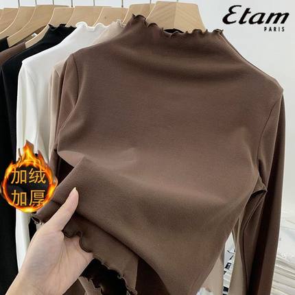 双面德绒木耳边长袖打底衫女2026秋冬新款内搭加绒保暖半高领上衣
