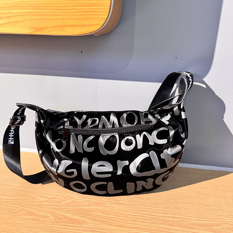 潮牌轻便斜挎包女2025新款大容量防水皮饺子包休闲胸包运动机车包