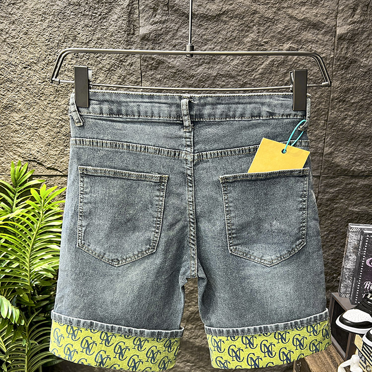 夏季薄款破洞贴布牛仔短裤男