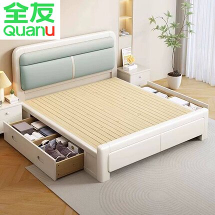 全友家居官网北欧实木床软靠白色1.8米主卧双人床现代简约1.5米经