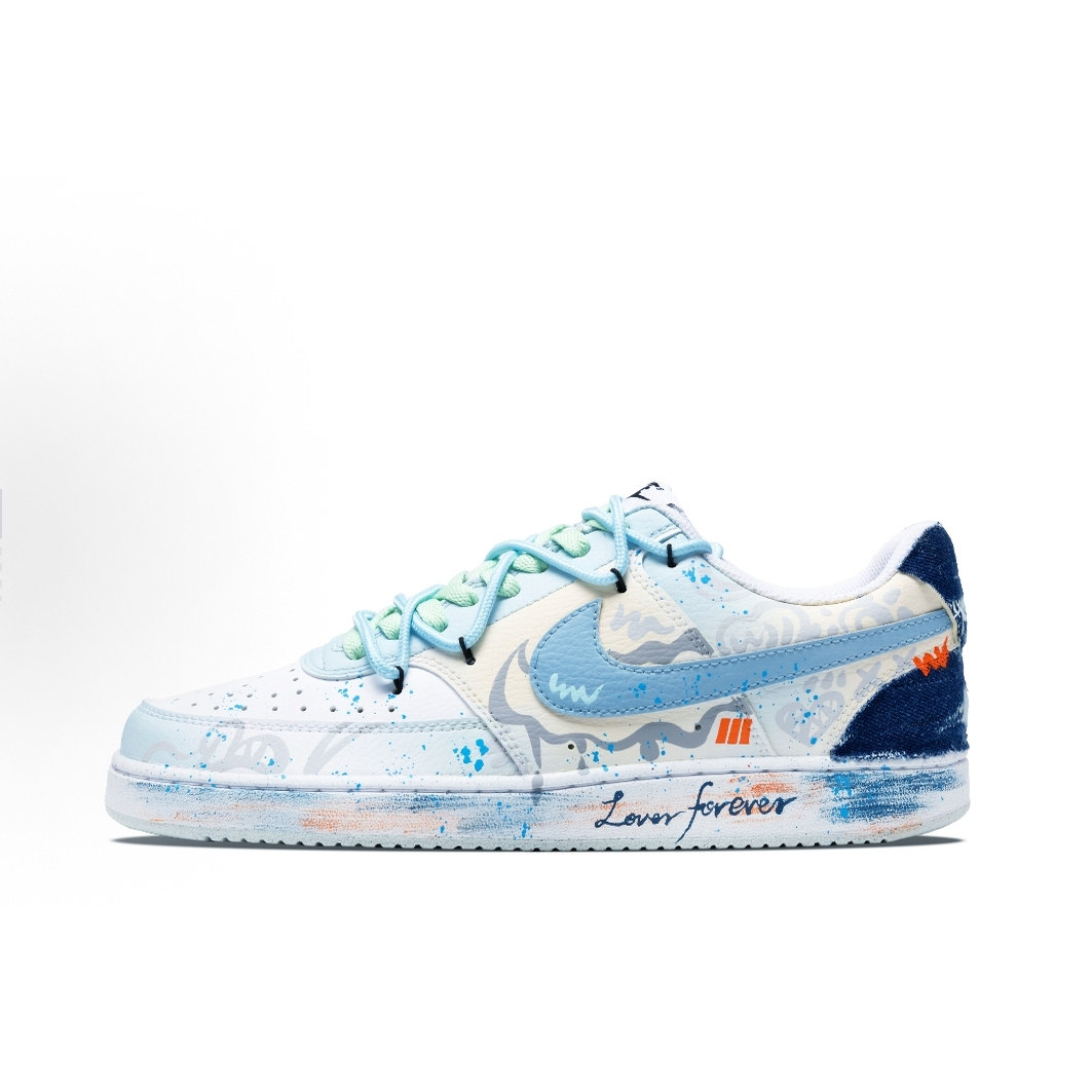 球鞋定制NIKE/耐克Court Vision1心动假日炫彩涂鸦渐变男女低板鞋