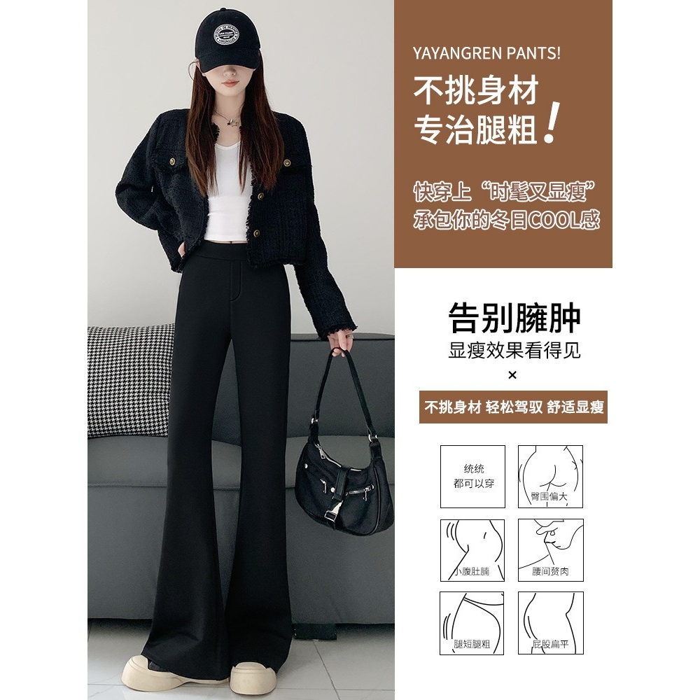 黑色喇叭裤子女新款2025小个子秋季休闲显瘦垂感高腰微喇西装AA1