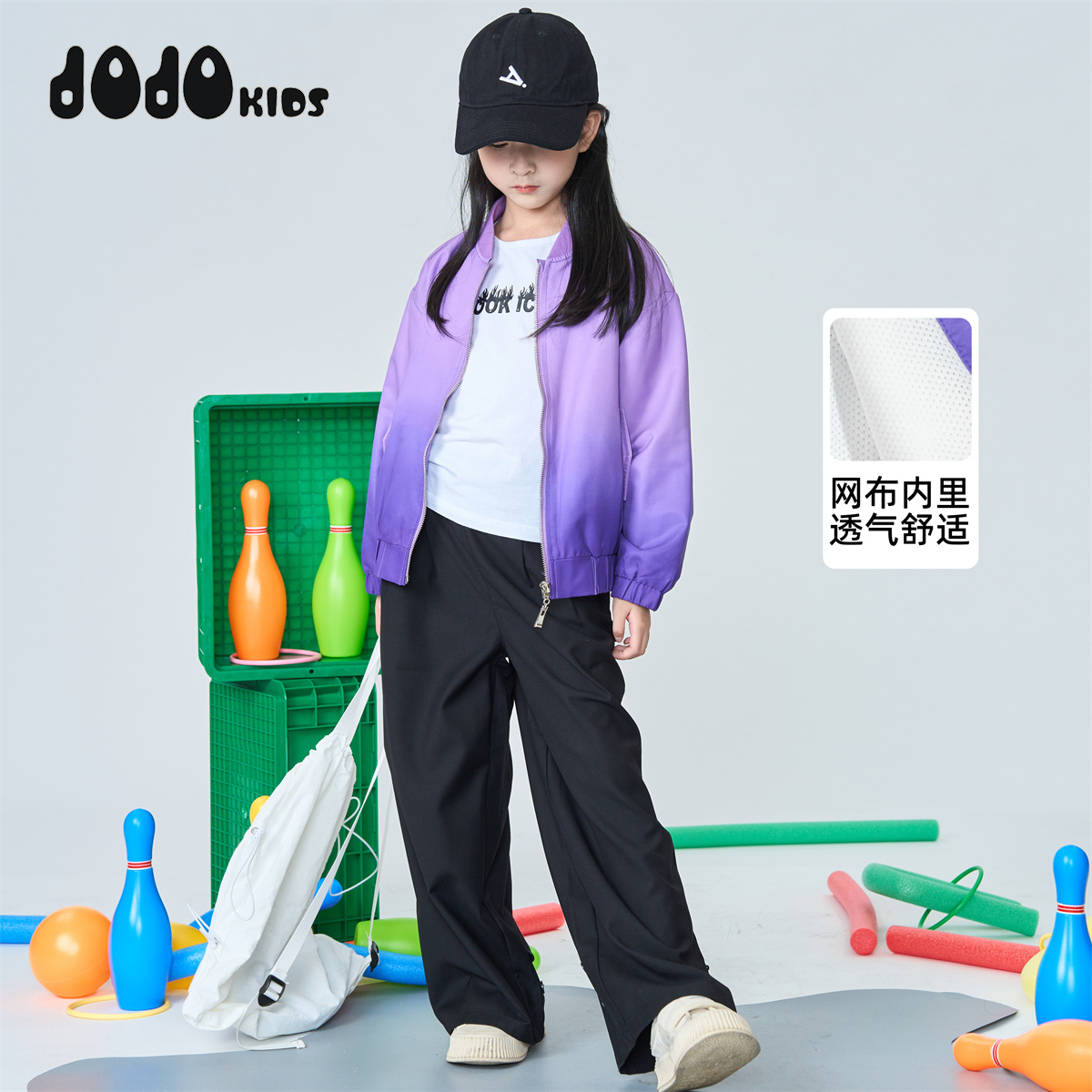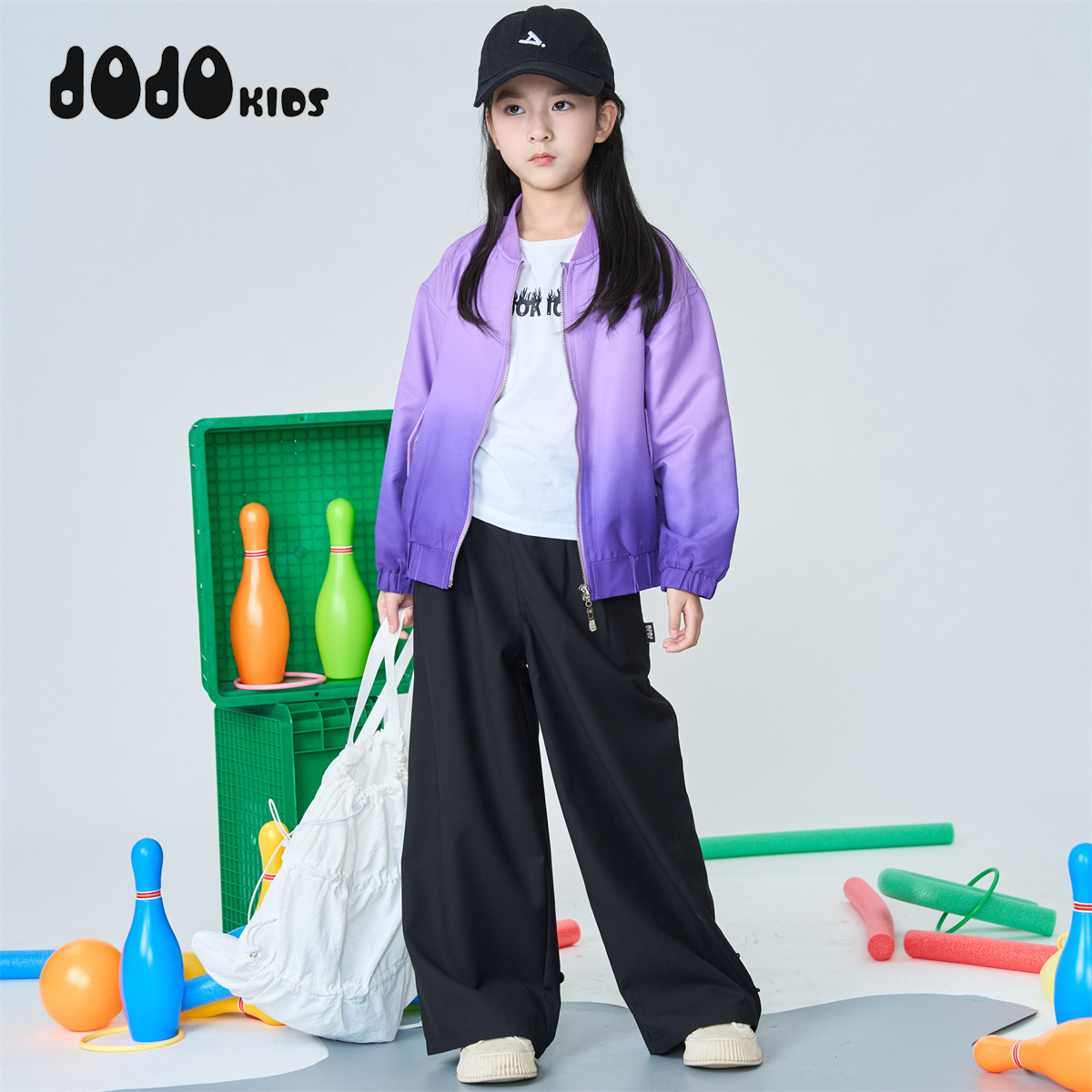 JOJO童装女童春秋装新款夹克外套儿童宽松个性洋气百搭渐变色潮酷