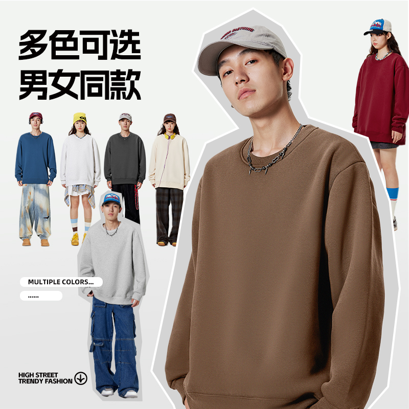 回力加绒卫衣男款无帽冬季2025新款羊羔绒圆领套头衫青少年上衣K