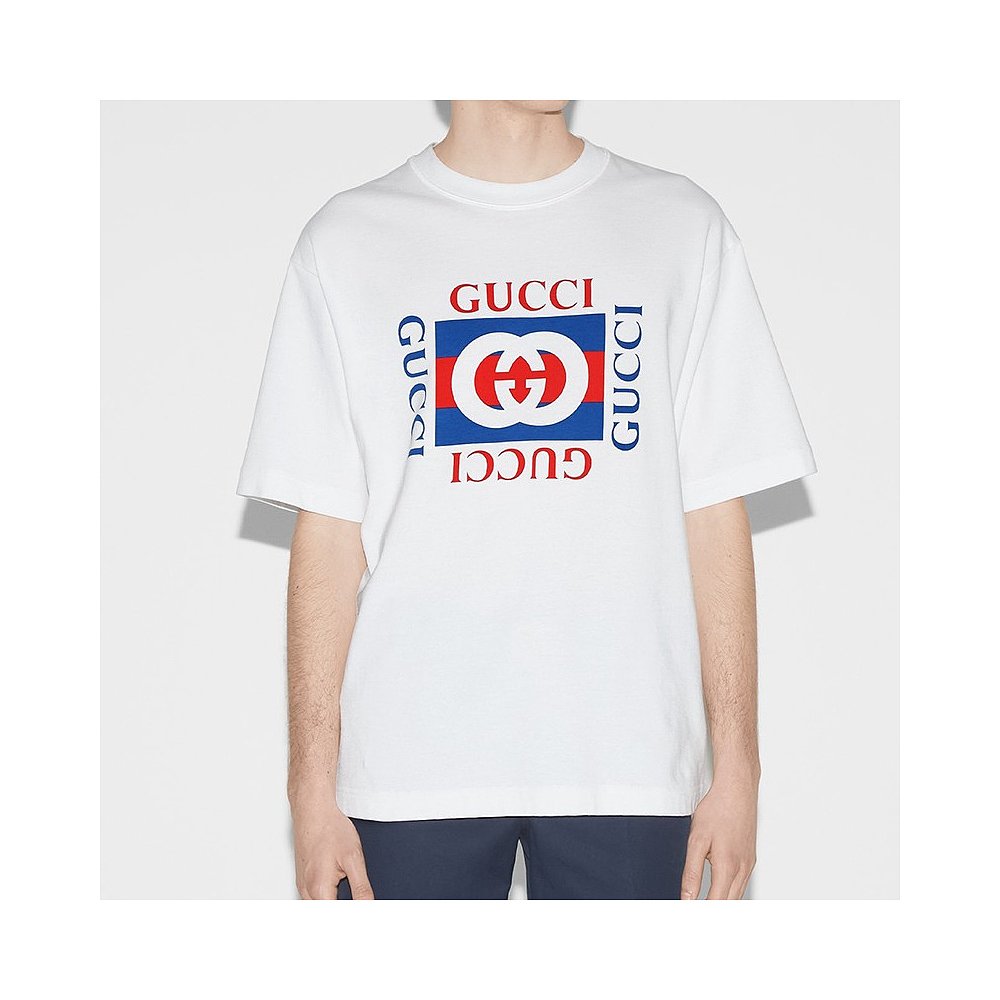 自营欧洲直邮GUCCI/古驰24新款 男士白色棉质圆领落肩双G印花T恤