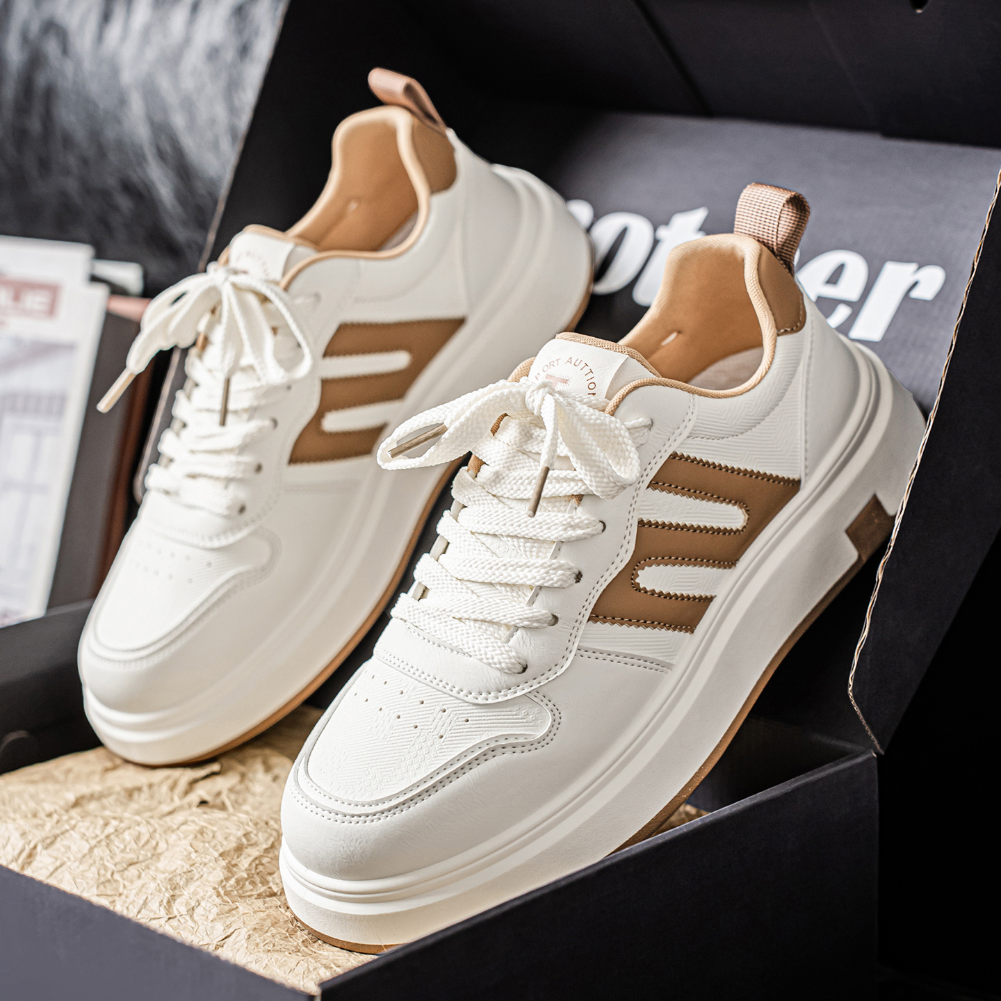 男鞋2025秋冬新款潮牌厚底小白鞋青少年软底运动皮面低帮休闲板鞋