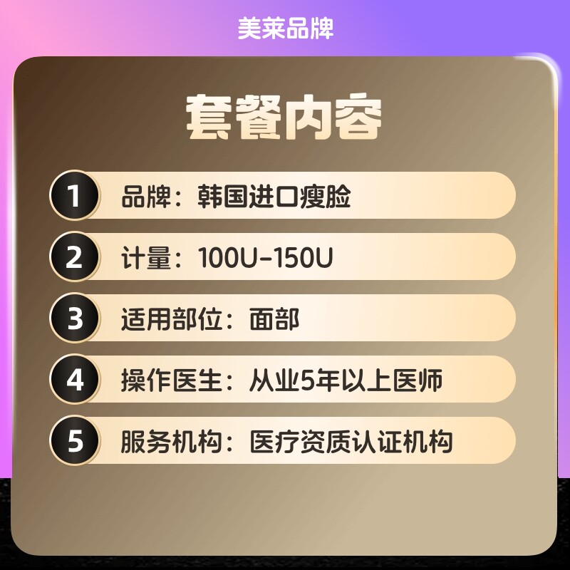 【到店医美】美莱韩国进口瘦脸100/150u瘦v脸咬肌提