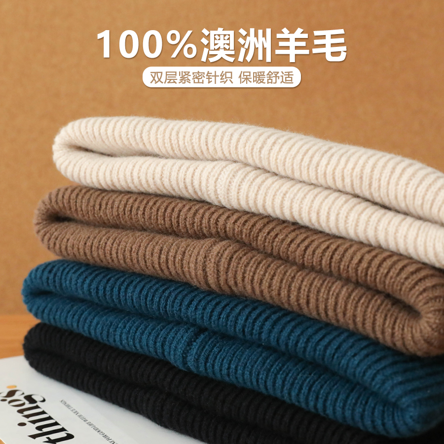 纯色澳洲羊毛针织帽女日系素色简约百搭保暖毛线帽羊绒护耳帽子男