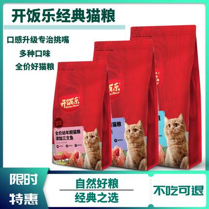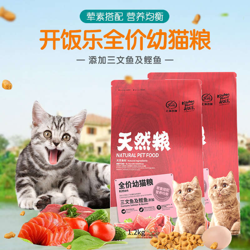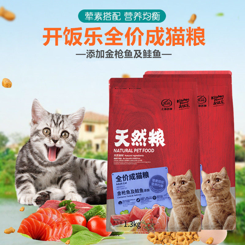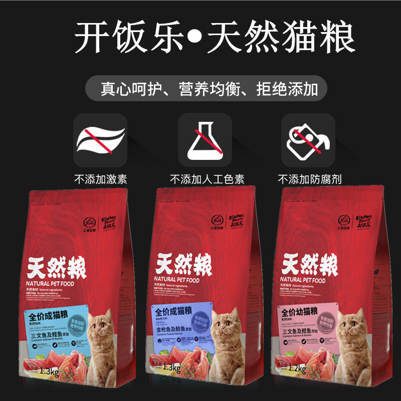 开饭乐天然挑嘴三文鱼鲣鱼金枪鱼成幼猫粮1.3k美毛低盐英短自然粮