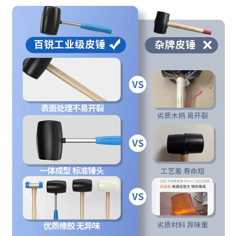 工业橡胶锤加厚软胶锤头地板砖安装防震无弹力木工家具维修专用