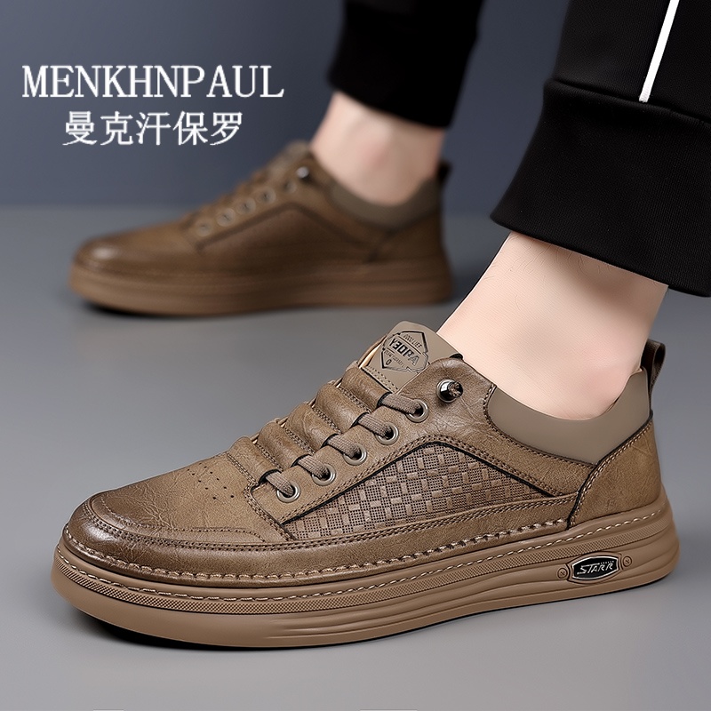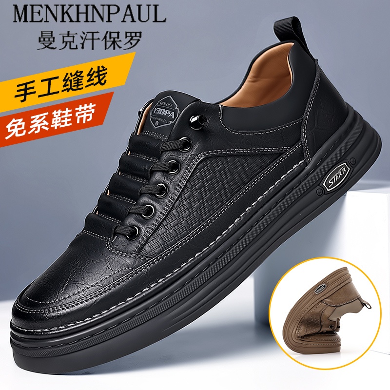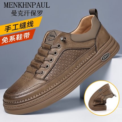 保罗正品男鞋2025秋新款软底一脚蹬驾车鞋真皮运动休闲皮鞋男板鞋