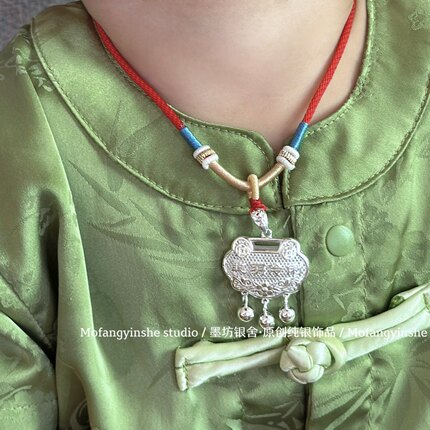 足银999纯银聪明伶俐平安锁可爱长命锁婴儿新生儿满月周岁礼物