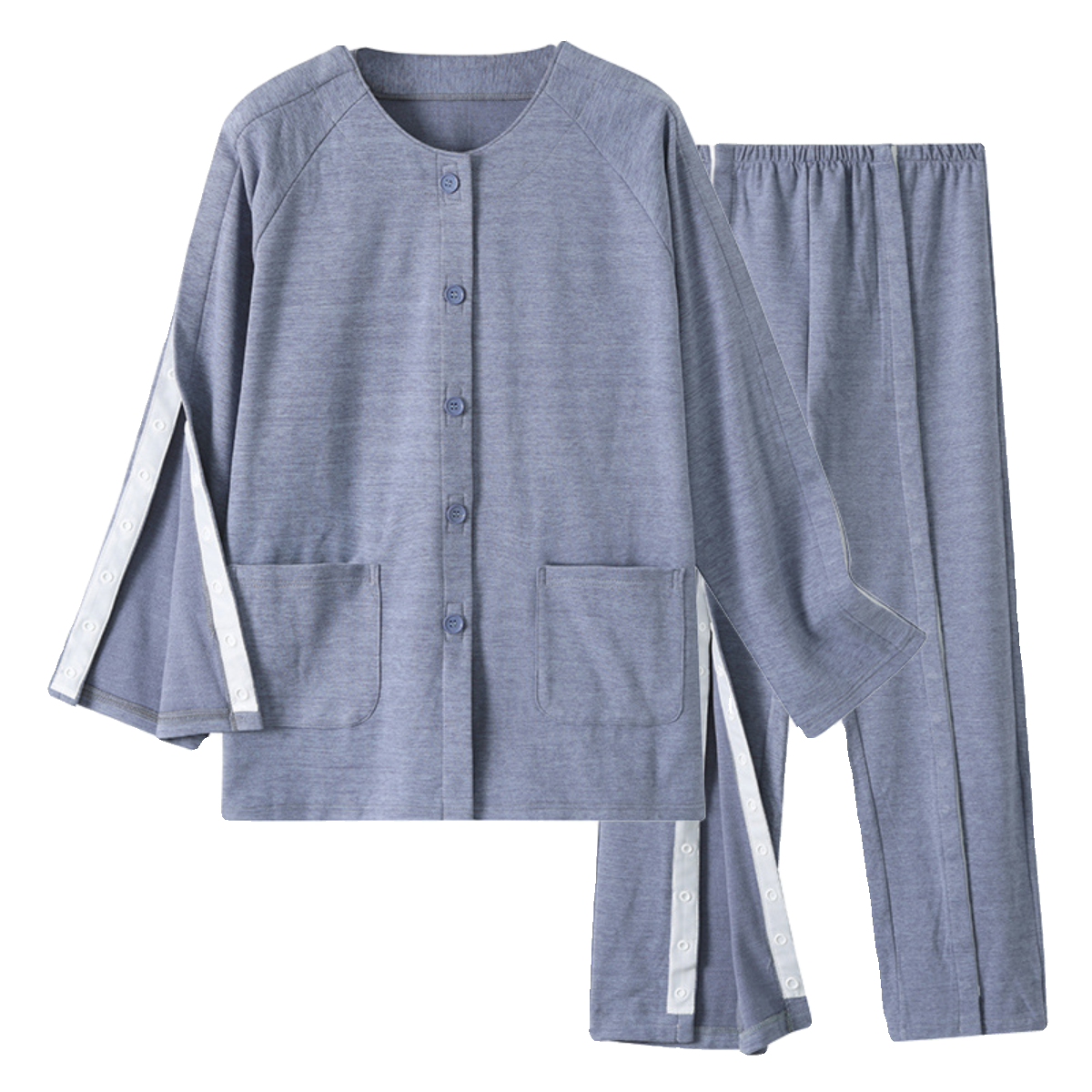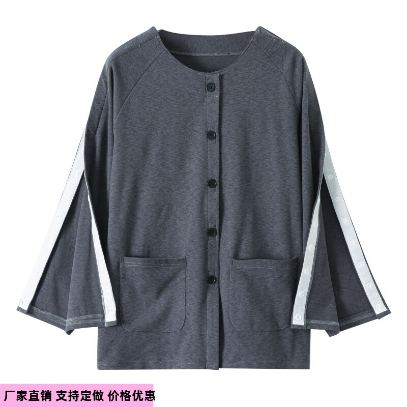 卧床瘫痪老人骨折病号服加厚德绒睡衣针灸化疗秋冬棉易穿脱护理服