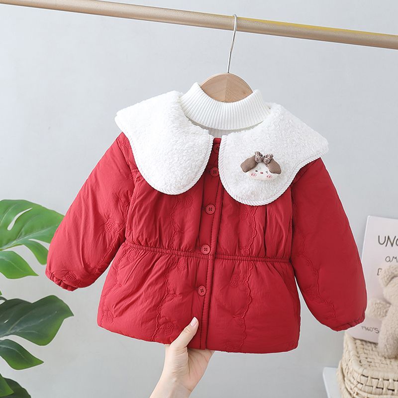 女童加绒棉服外套秋冬新款儿童冬装女宝宝棉衣小女孩薄款棉袄小童