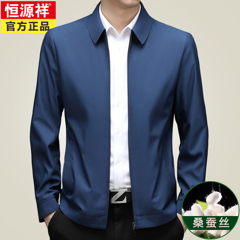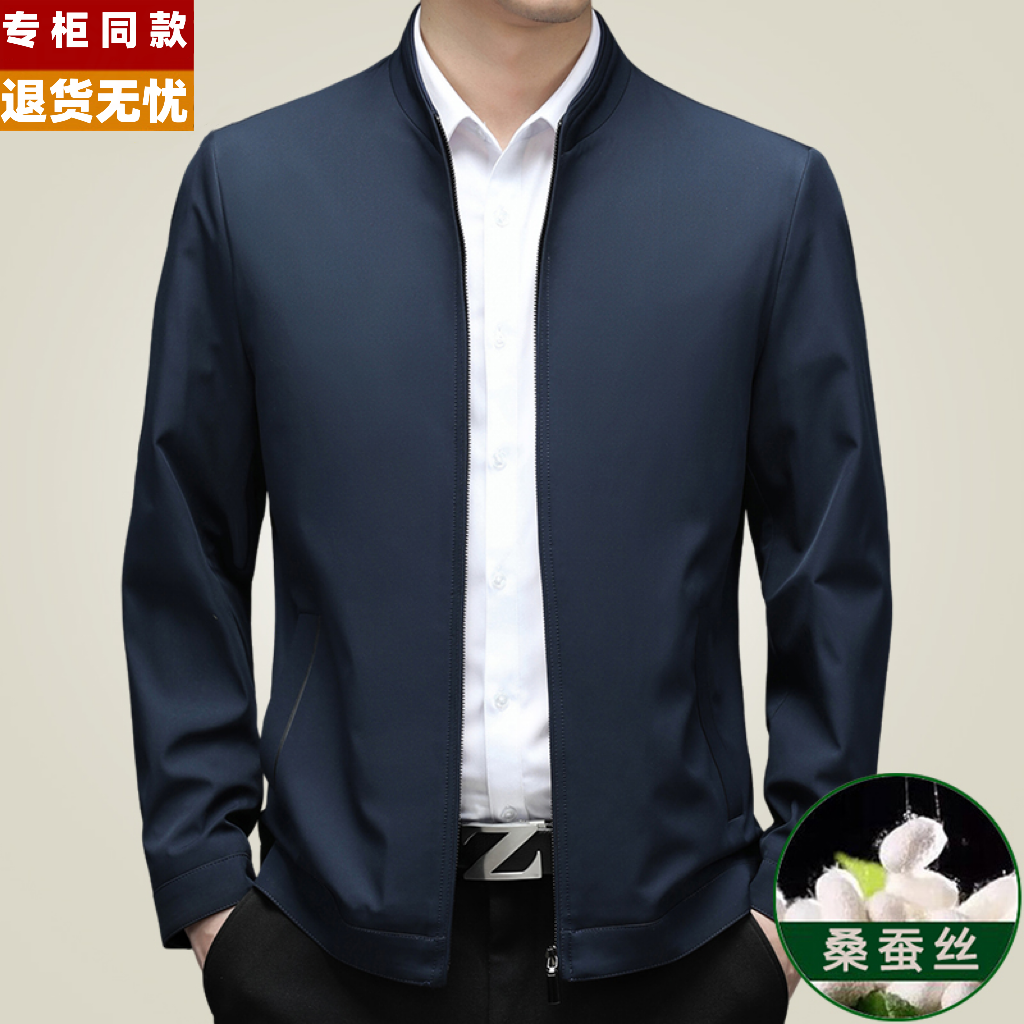 正品桑蚕丝夹克男春秋季新款中老年爸爸装商务宽松立领外套
