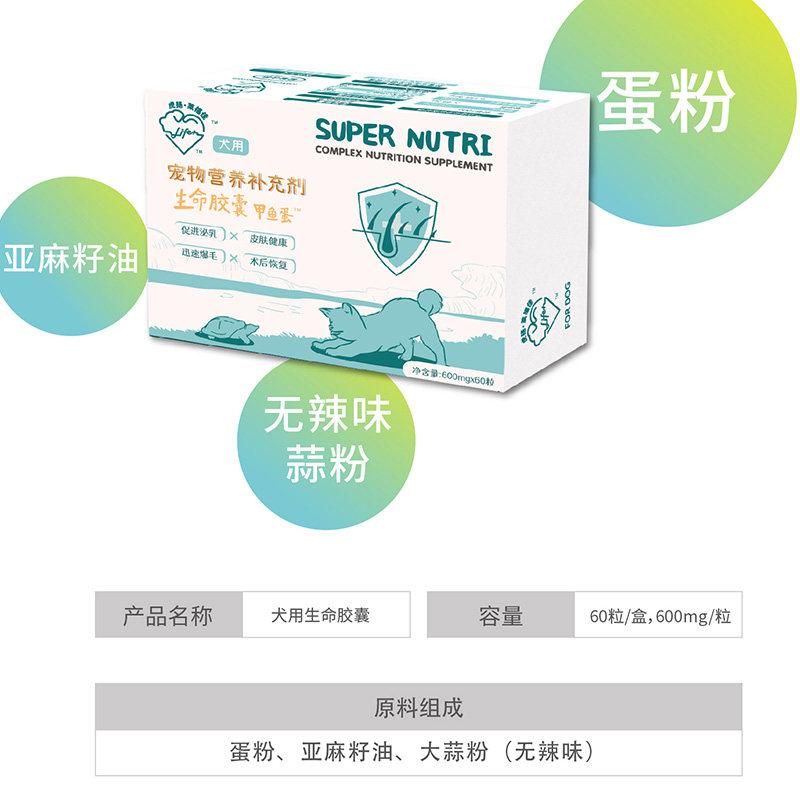 台湾虎扬Life+生命胶囊爆毛美毛丹甲鱼蛋猫狗皮毛健康孕期营养品