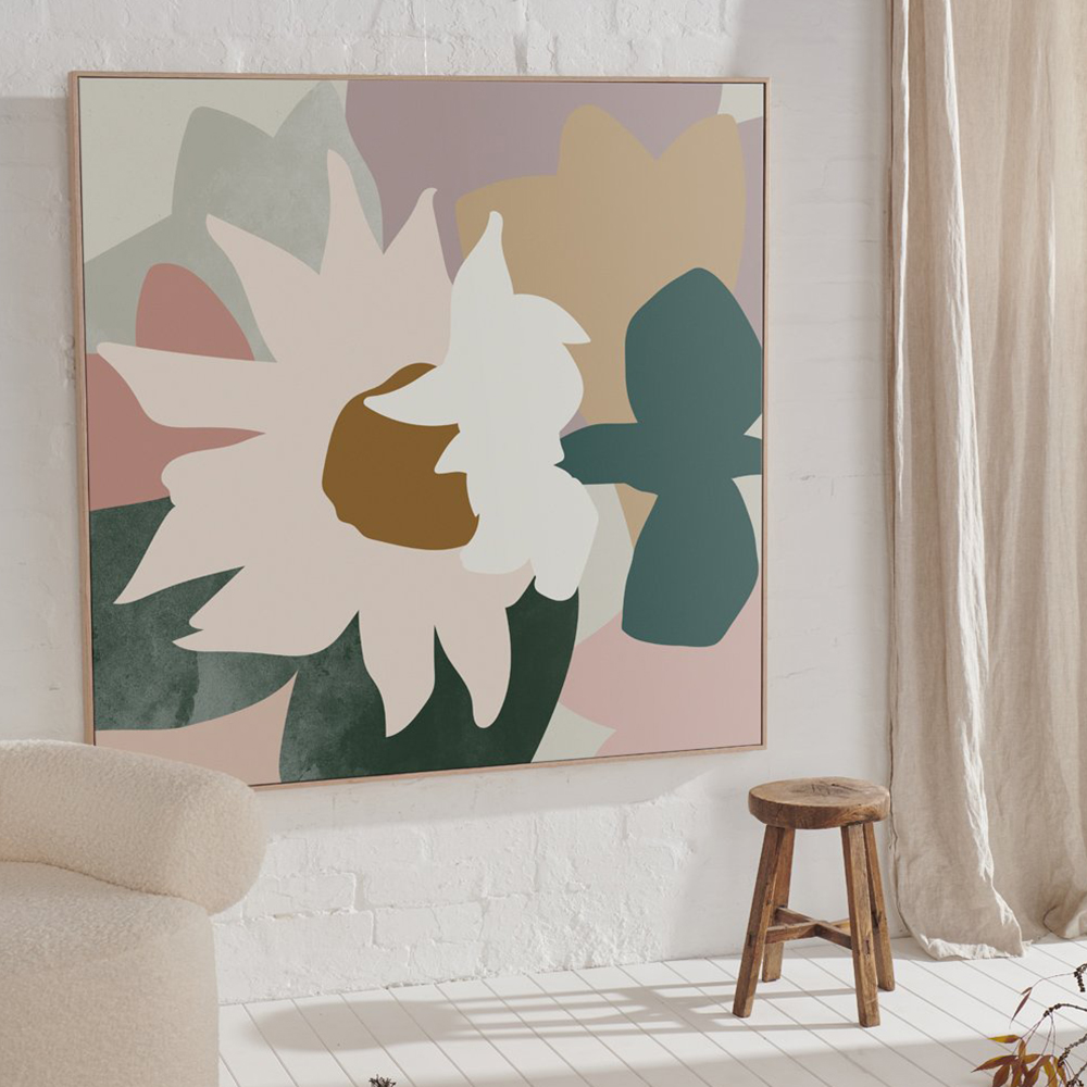 北欧抽象花卉插画装饰画芯卧室客厅挂画未装裱油画布不含画框自粘