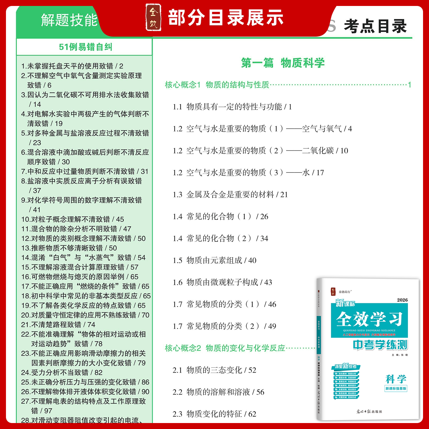 全新上市/2026春全效学习中考学练测科学(新课标强基版) 中考总复习智能作业AB本阶段检测卷浙里新中考对题30练强基达标手册讲练