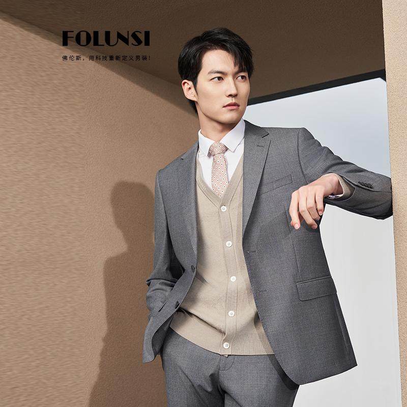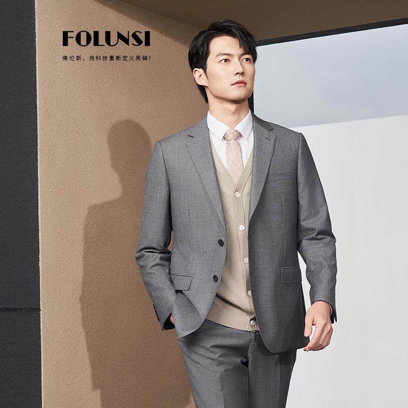 佛伦斯FOLUNSI男装单西外套男秋冬款商务休闲西装绵羊毛男士西服