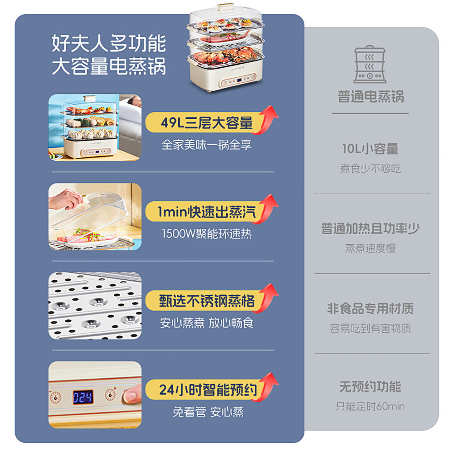 WIFER2025电蒸锅49L家用四层