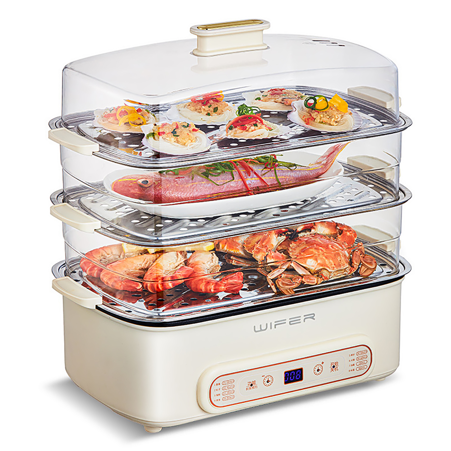 WIFER2025电蒸锅火锅49L家用四层大容量蒸鱼预约蒸煮四合一早餐机