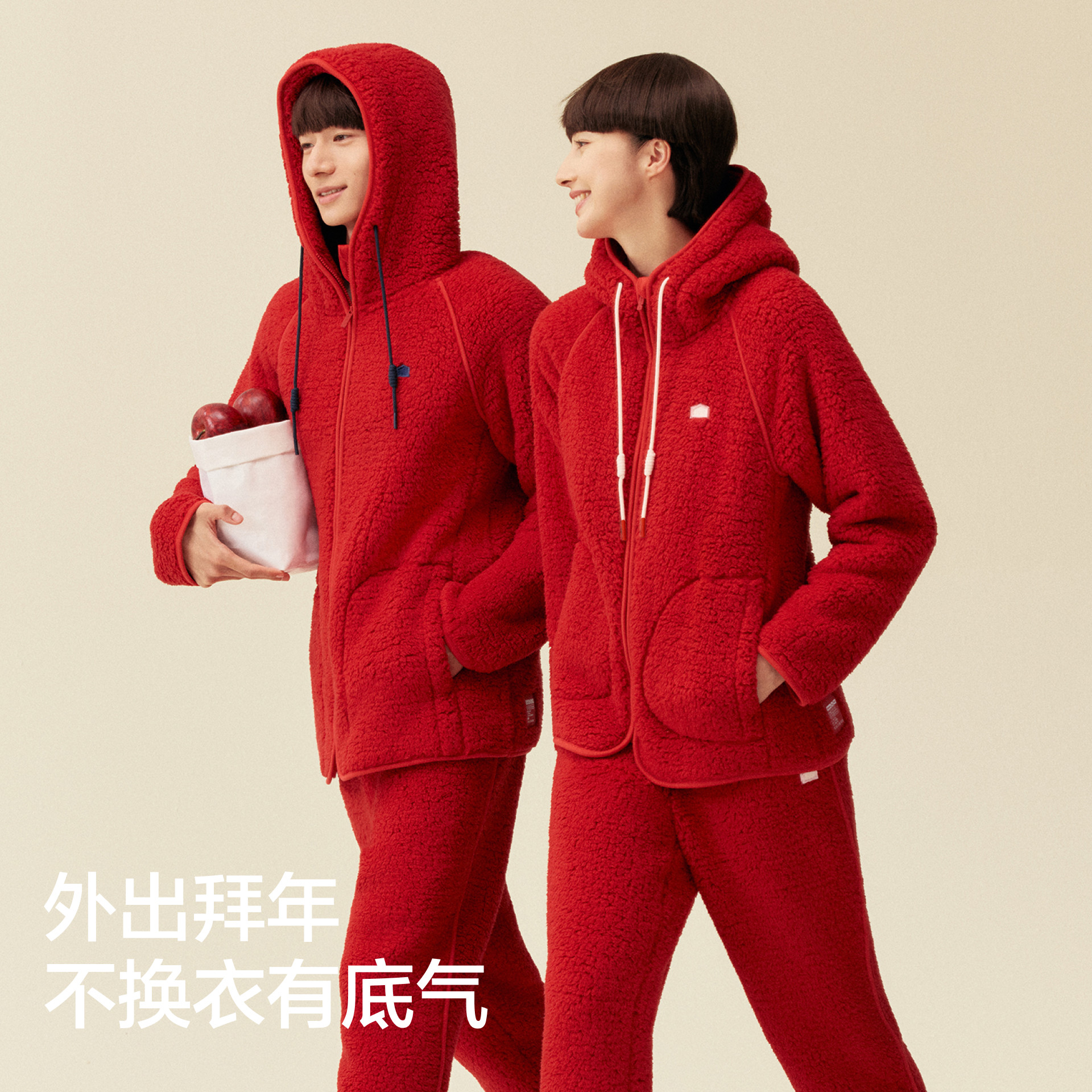 蕉内红色计划506Home男款仿羊羔绒家居服女加厚冬马年本命年睡衣