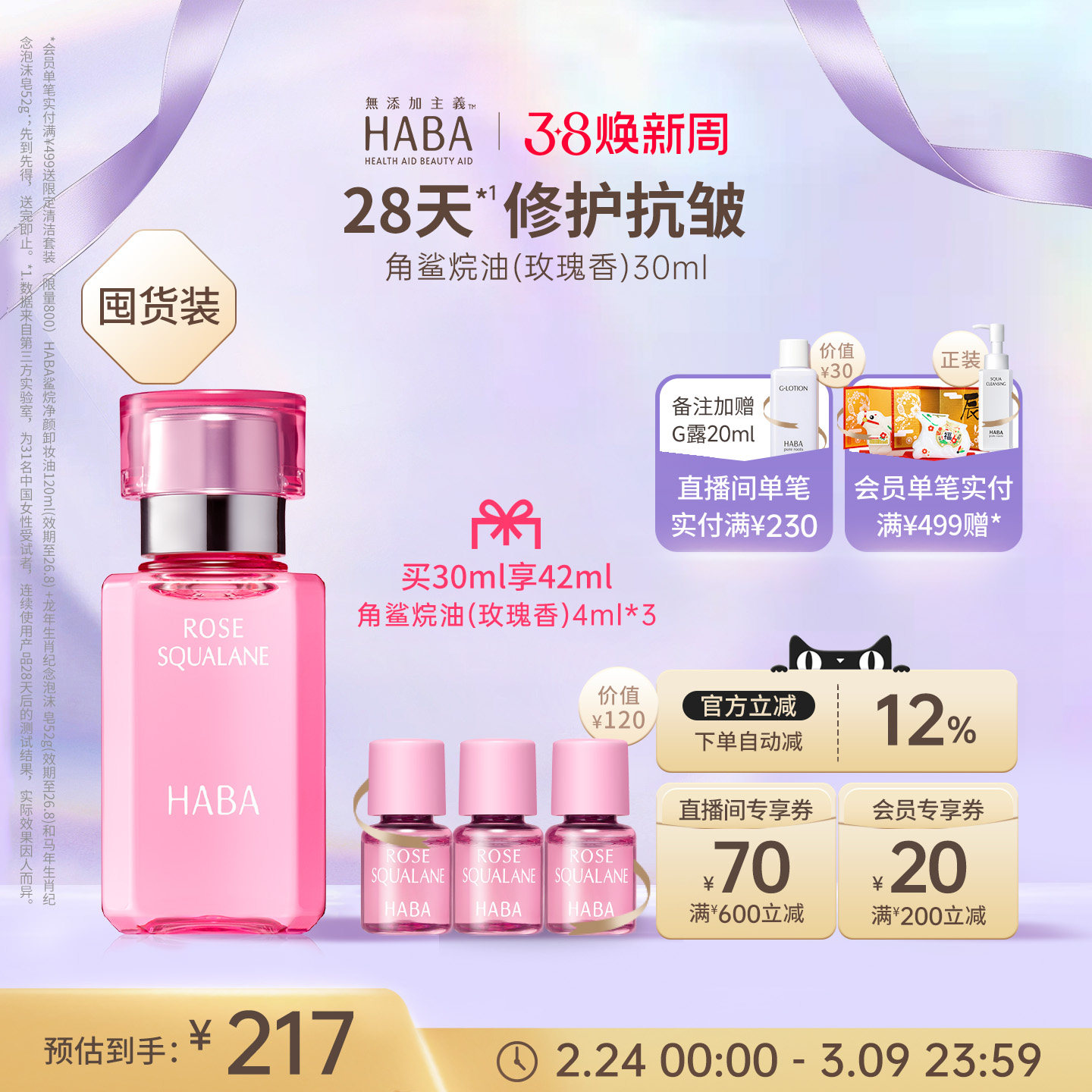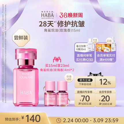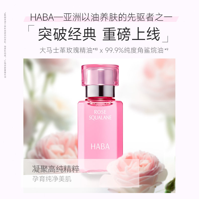 HABA鲨烷精纯美容油(玫瑰香)15ml/30ml 舒缓修护保湿抗皱以油养肤