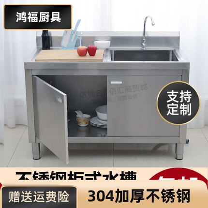 304厨房不锈钢水池槽柜奶茶店饭店洗菜盆水槽双槽厨房双槽洗刷池