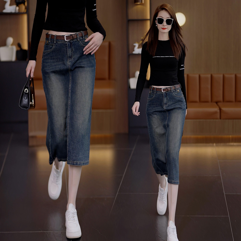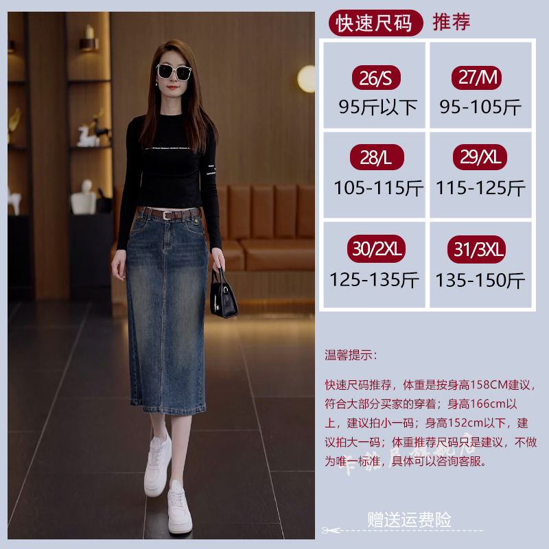 开叉牛仔半身裙女2024年春秋季新款高腰包臀裙中长款过膝一步裙子