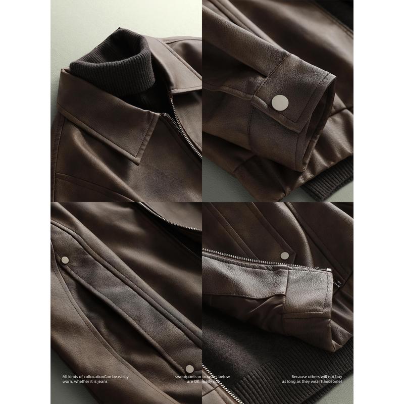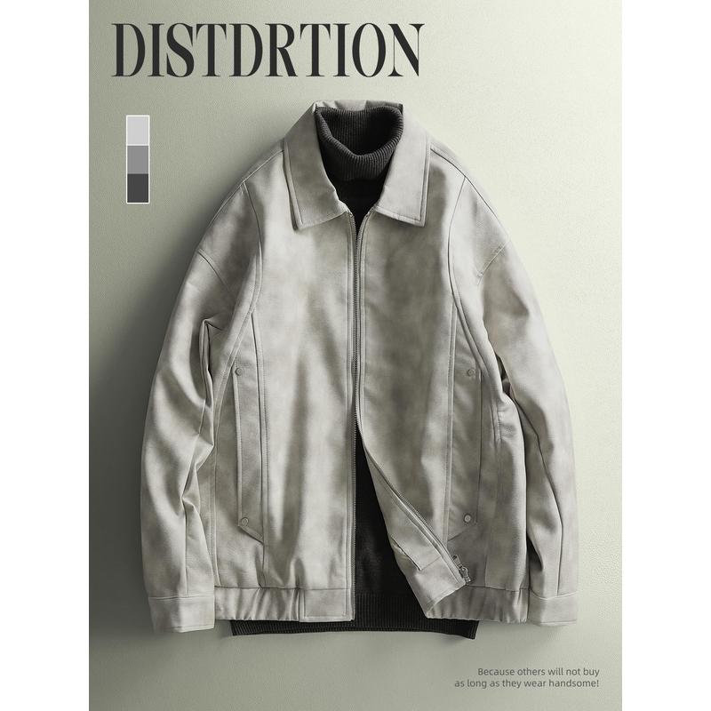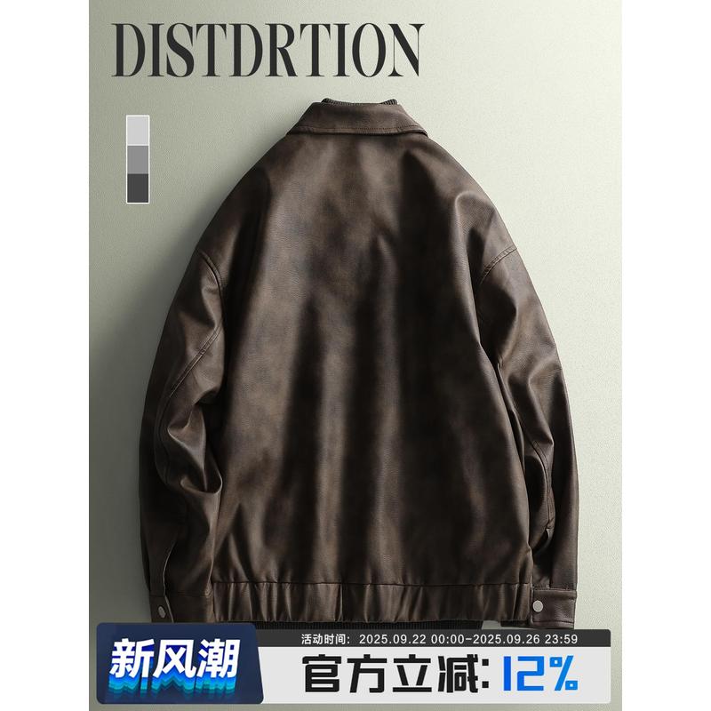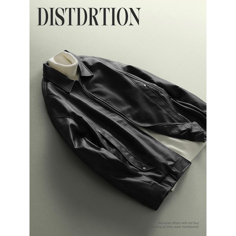 美式高街晕染设计皮夹克外套男痞帅PU皮宽松机车服短款夹克