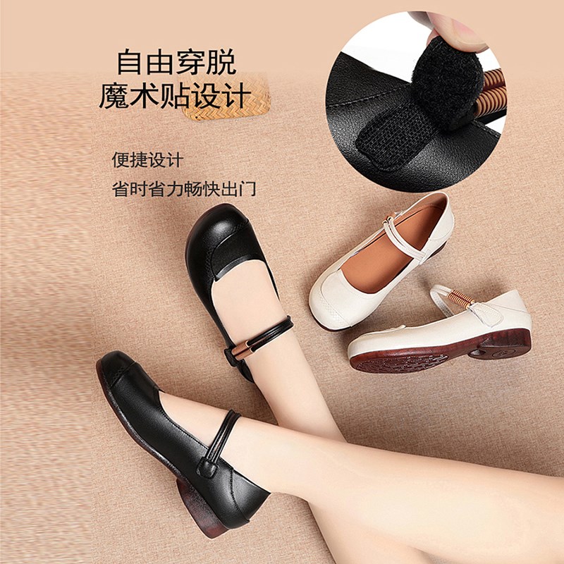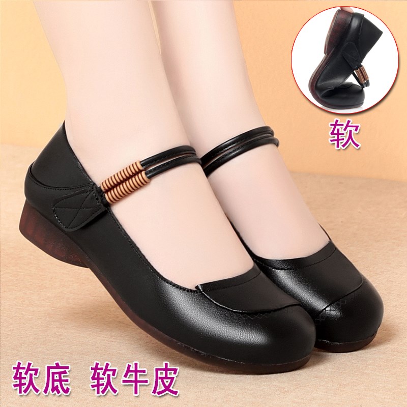 平底妈妈鞋舒适不累脚女鞋中老年真皮软底皮鞋春秋款防滑牛筋单鞋
