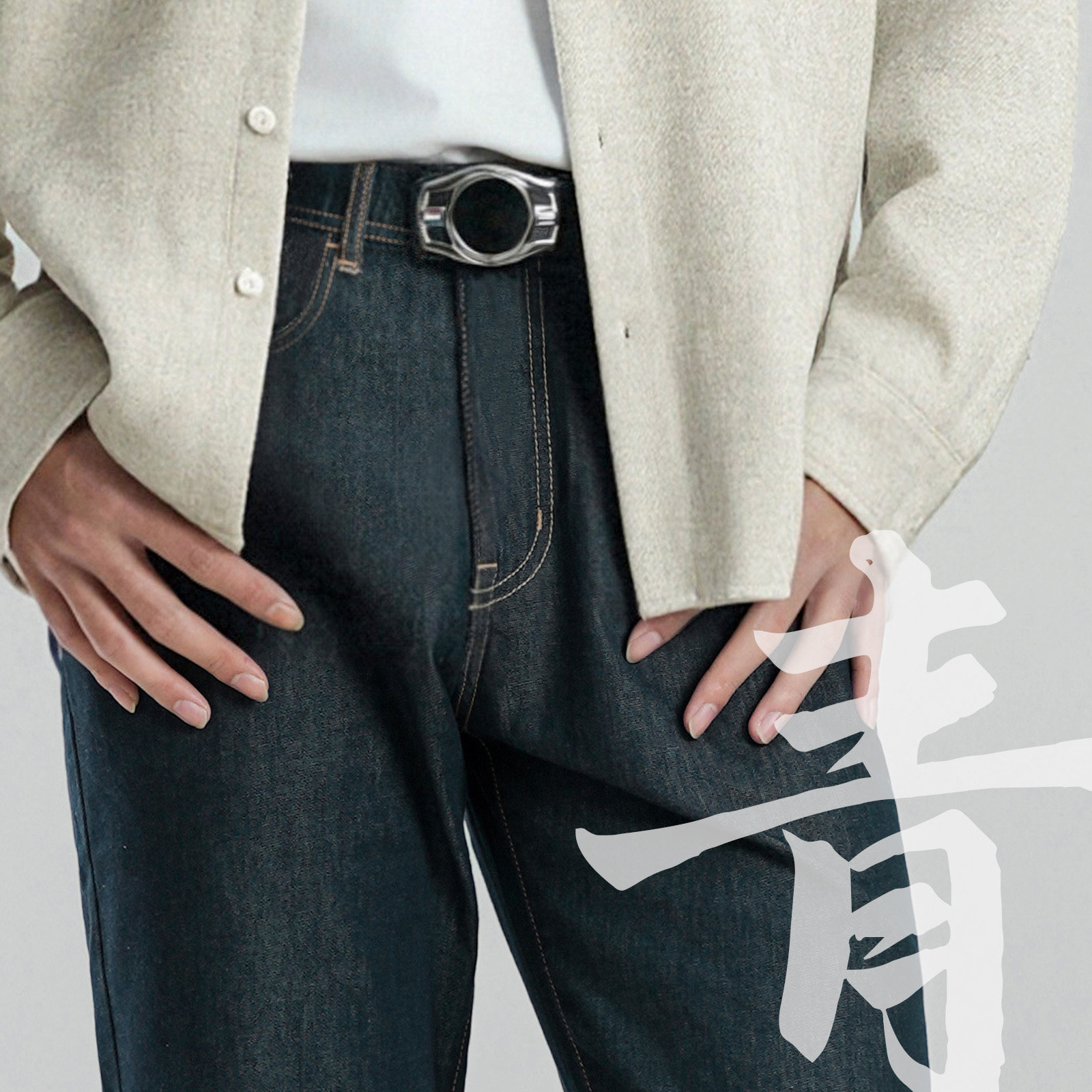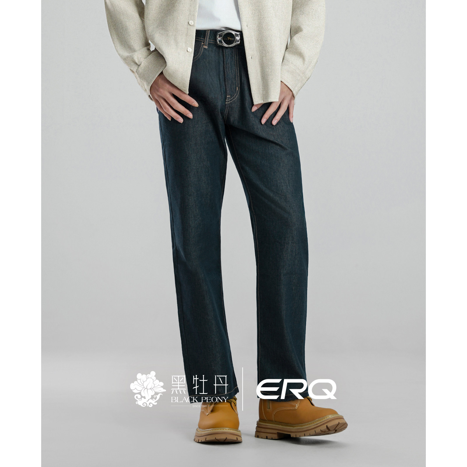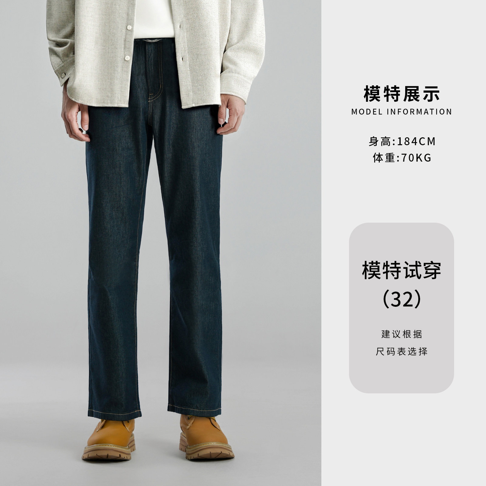ERQ【黛青色抓绒冬款】902男宽松直筒磨绒牛仔裤保暖弹力冬厚休闲
