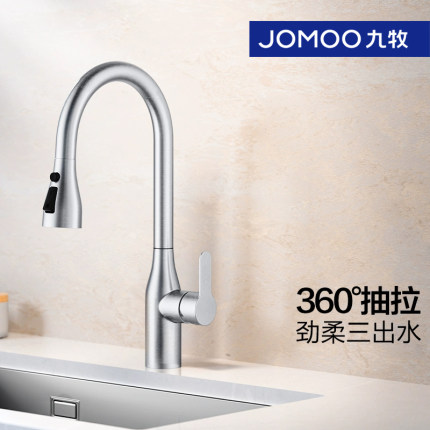 九牧抽拉厨房水龙头冷热家用防溅水不锈钢万向旋转伸缩水槽33178
