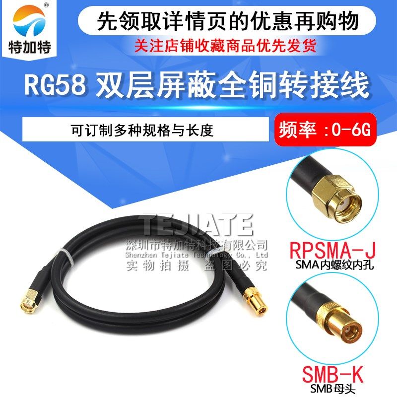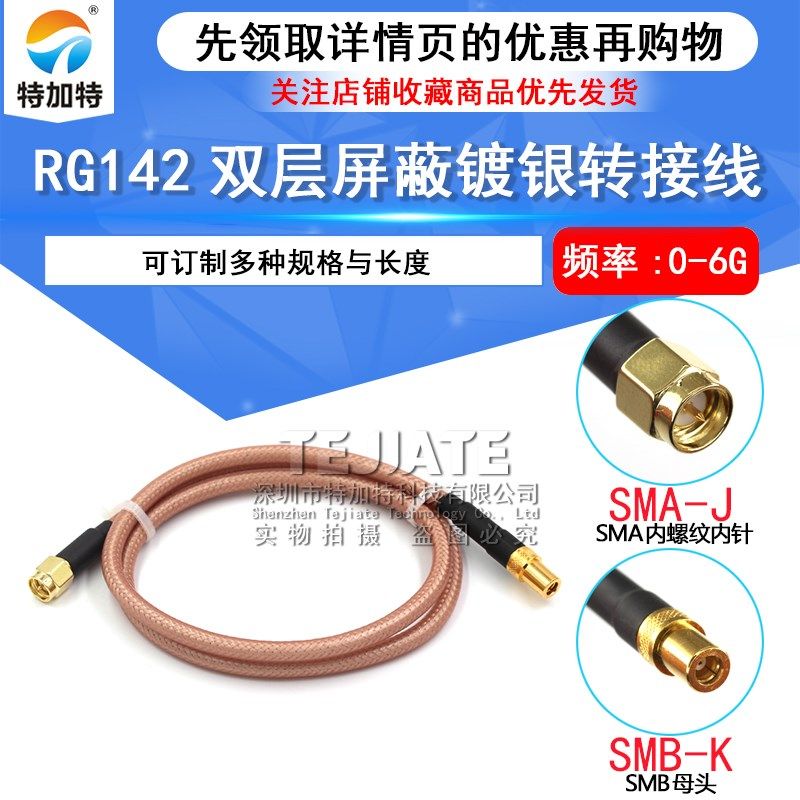 射频连接线SMA内螺内针转SMB-K公母头高频同轴馈线RG58/142转接线