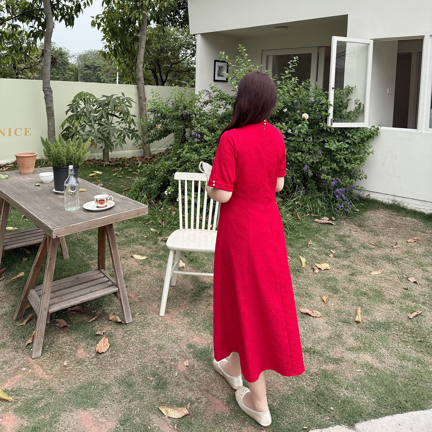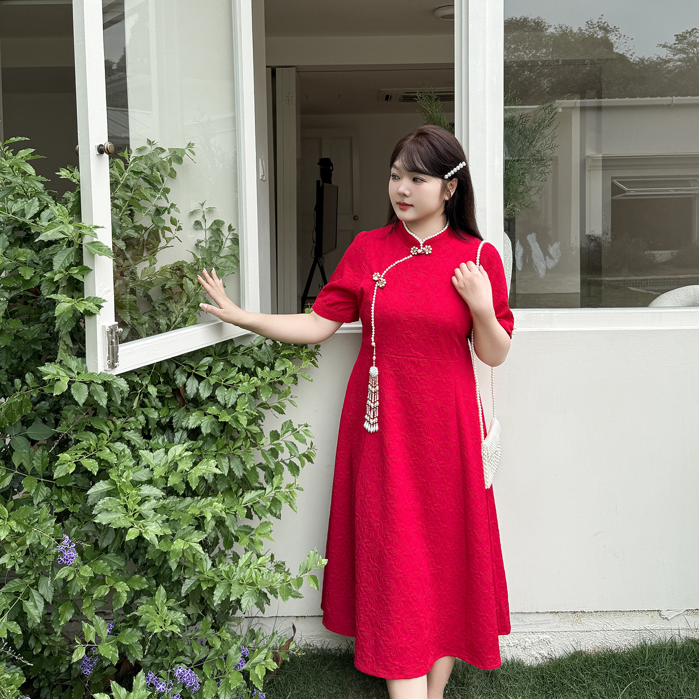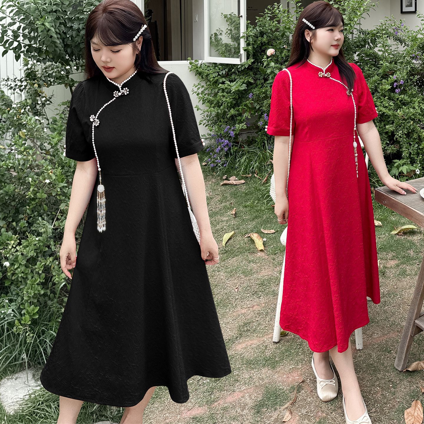 2025夏装新款230斤大码女红色结婚中式旗袍200胖mm订婚敬酒连衣裙