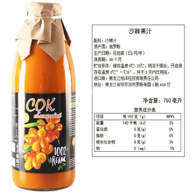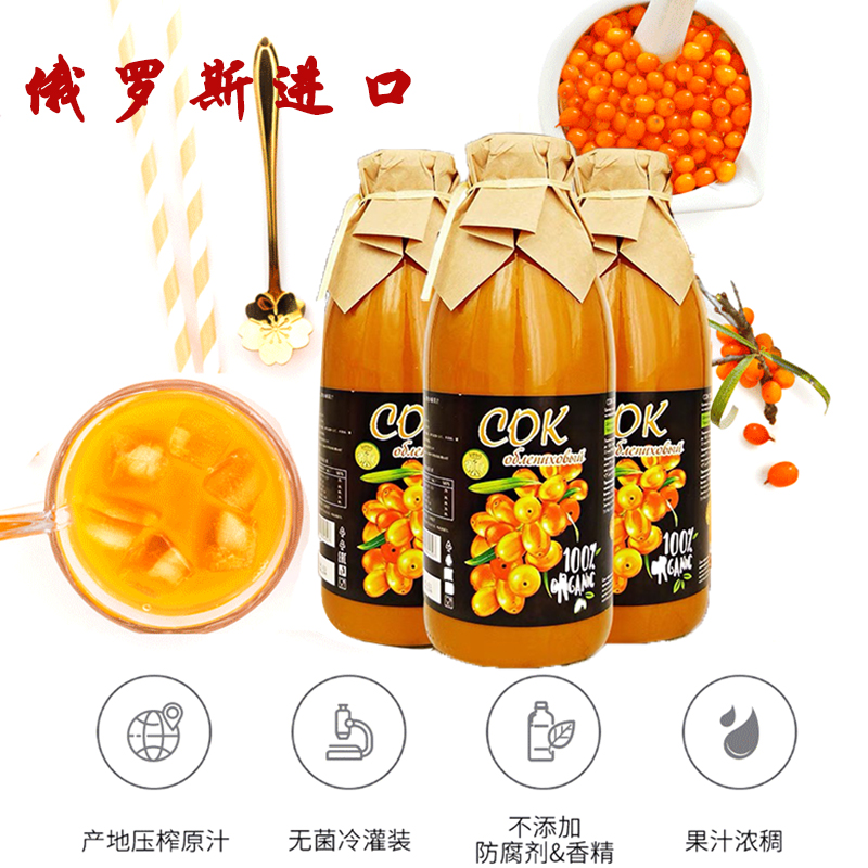 沙棘汁俄罗斯进口果汁100无添加维C野生原装沙棘原浆750ml