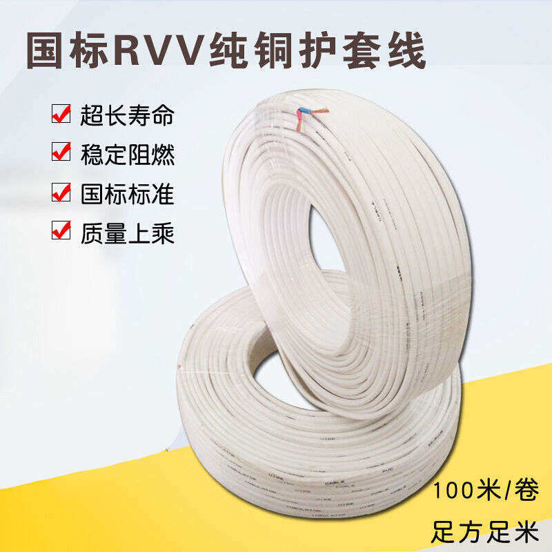 电线2芯2.5平方国标1.546双芯纯铜芯线RVV软白护套线家装电缆软芯