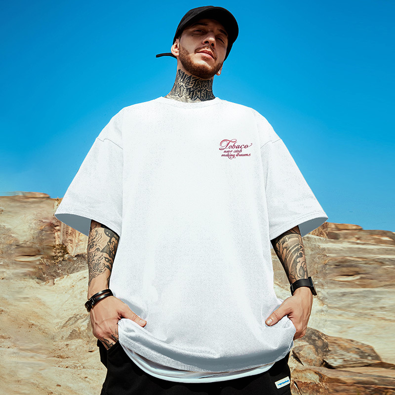 300g美式重磅宽松胖子T恤白色短袖五分袖纯棉情侣加肥加大码男装