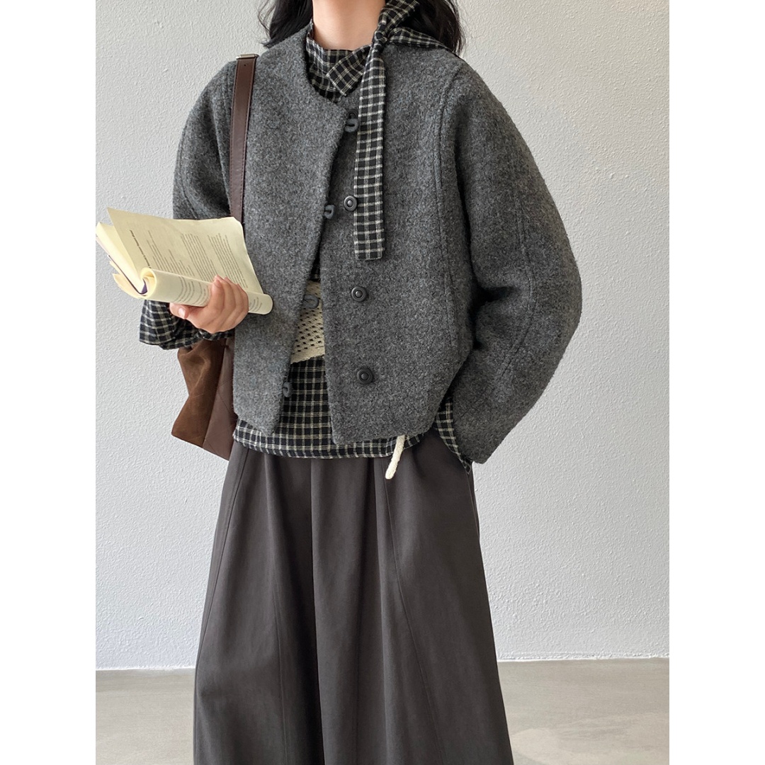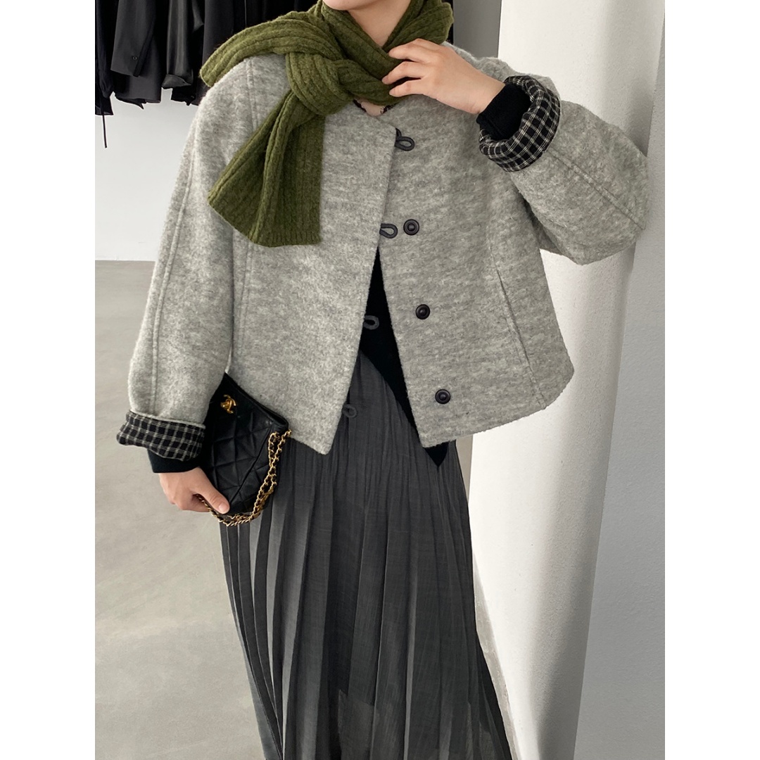 独特超好看的小香风圆领短款毛呢外套女秋冬小个子韩版显瘦高级感