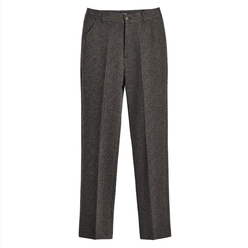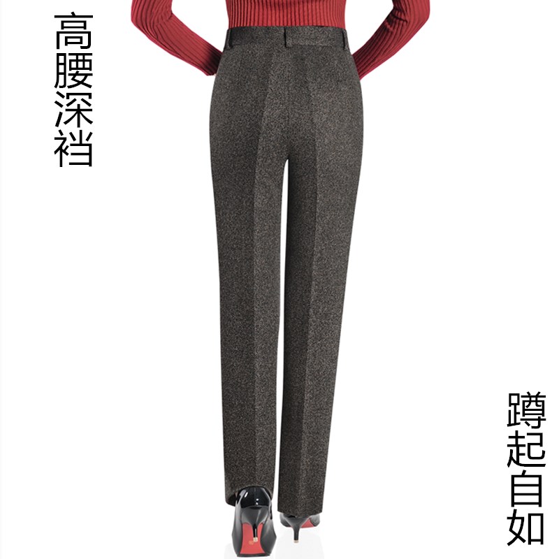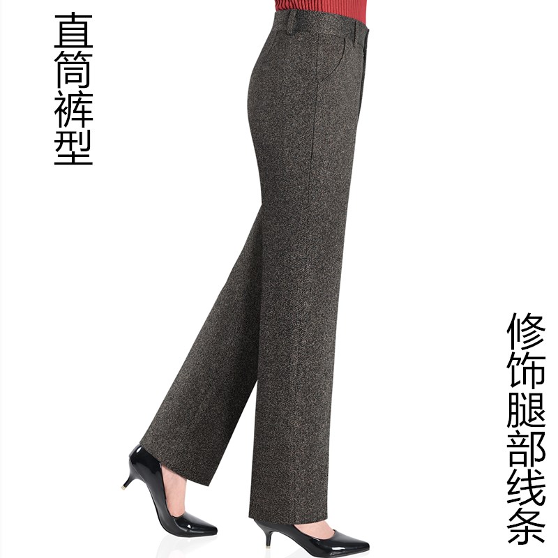 秋冬新款女裤弹力妈妈直筒裤高腰中年女式西裤休闲百搭长裤人字纹