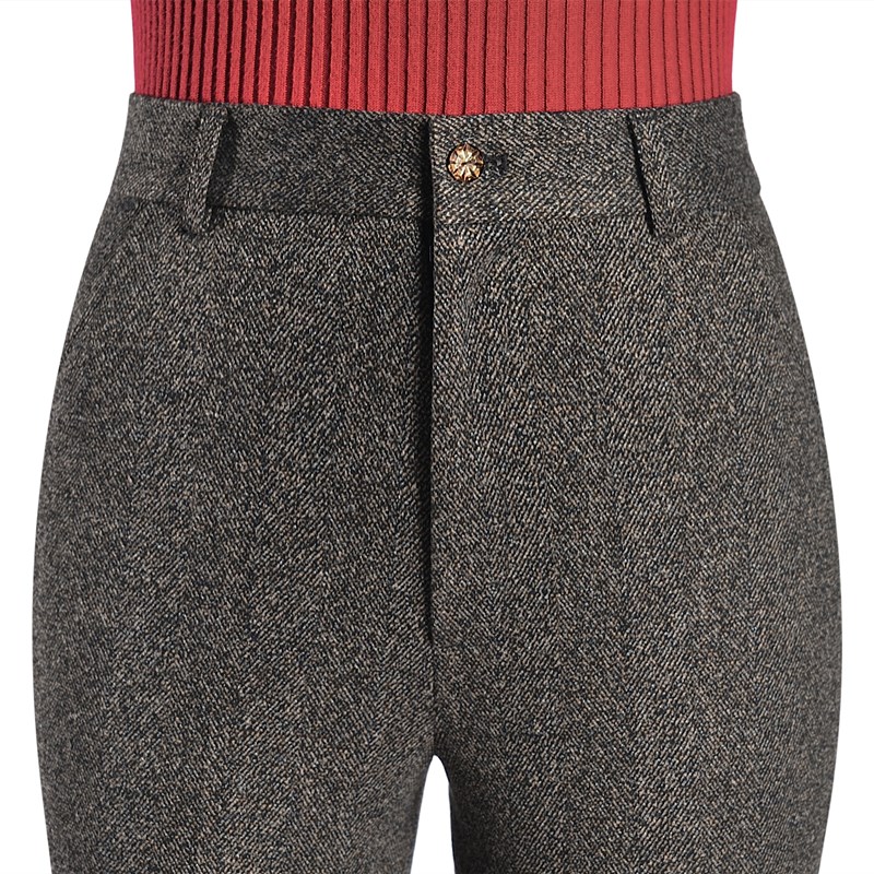 秋冬新款百搭高腰女裤人字纹西裤