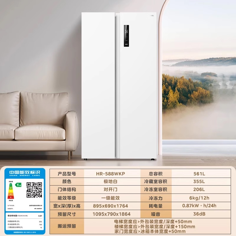 美的华凌588双开门电冰箱家用对开门一级能效变频大容量风冷无霜