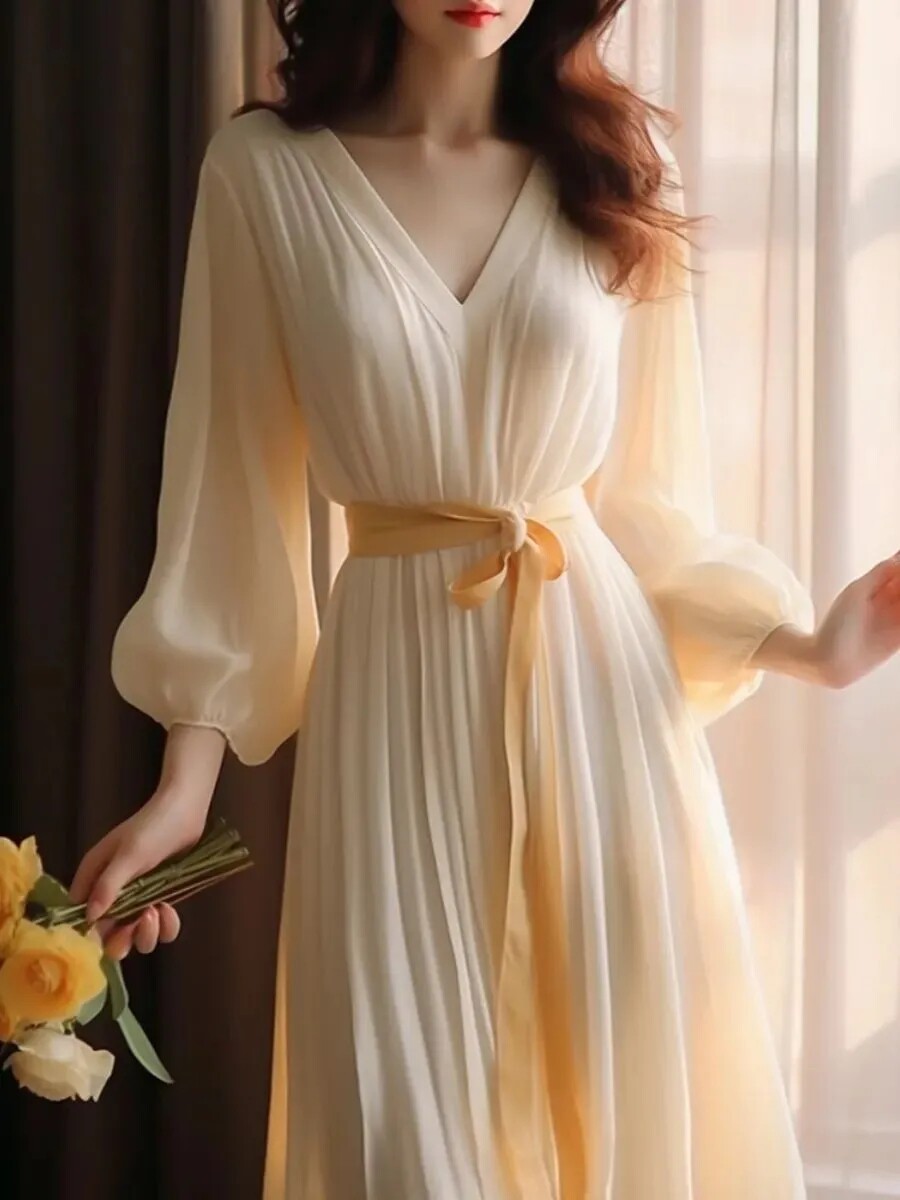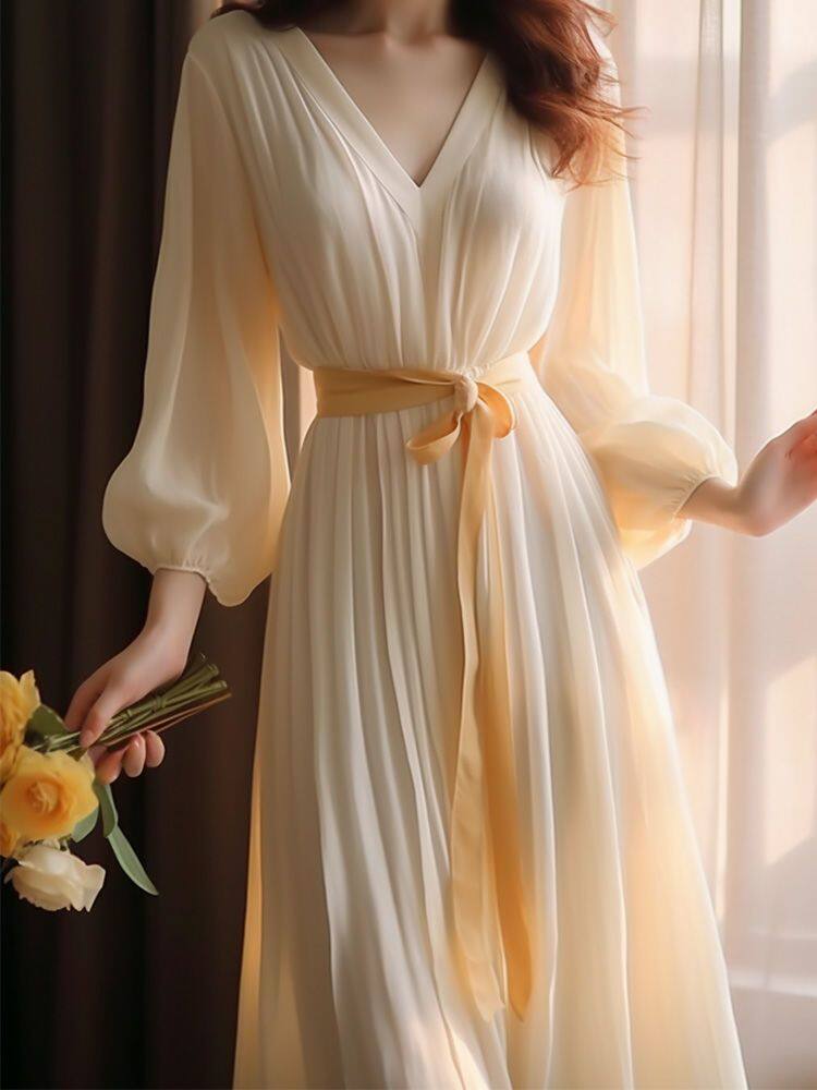 高端气质优雅法式春夏新款白色雪纺连衣裙精致长裙睡裙长款礼服裙