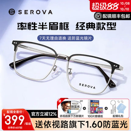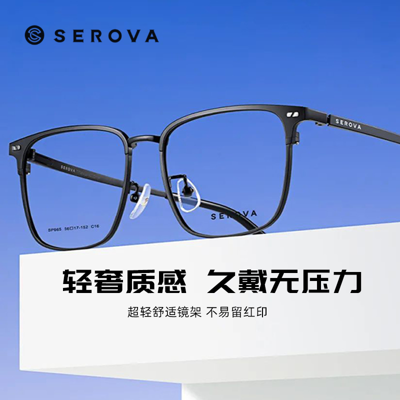 SEROVA施洛华近视眼镜框大脸男女眉线框钛架超轻眼镜架配镜SP965