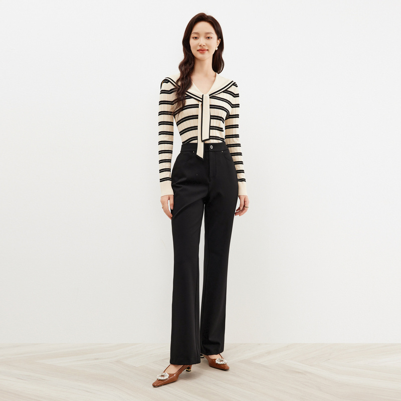 珂莱蒂尔女装春季通勤百搭高腰西装喇叭裤垂感微喇裤显瘦