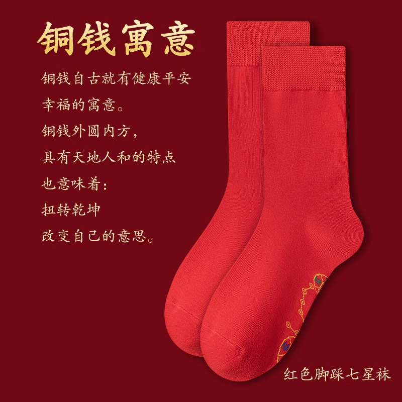 本命年红色脚踏七星男女中长筒袜