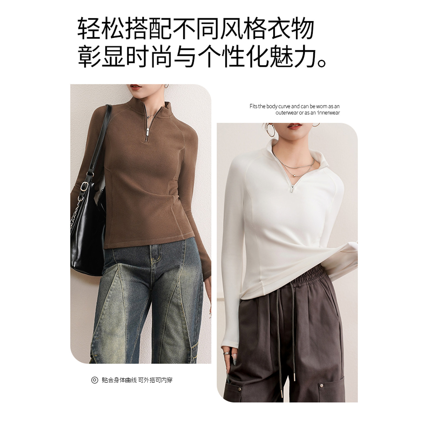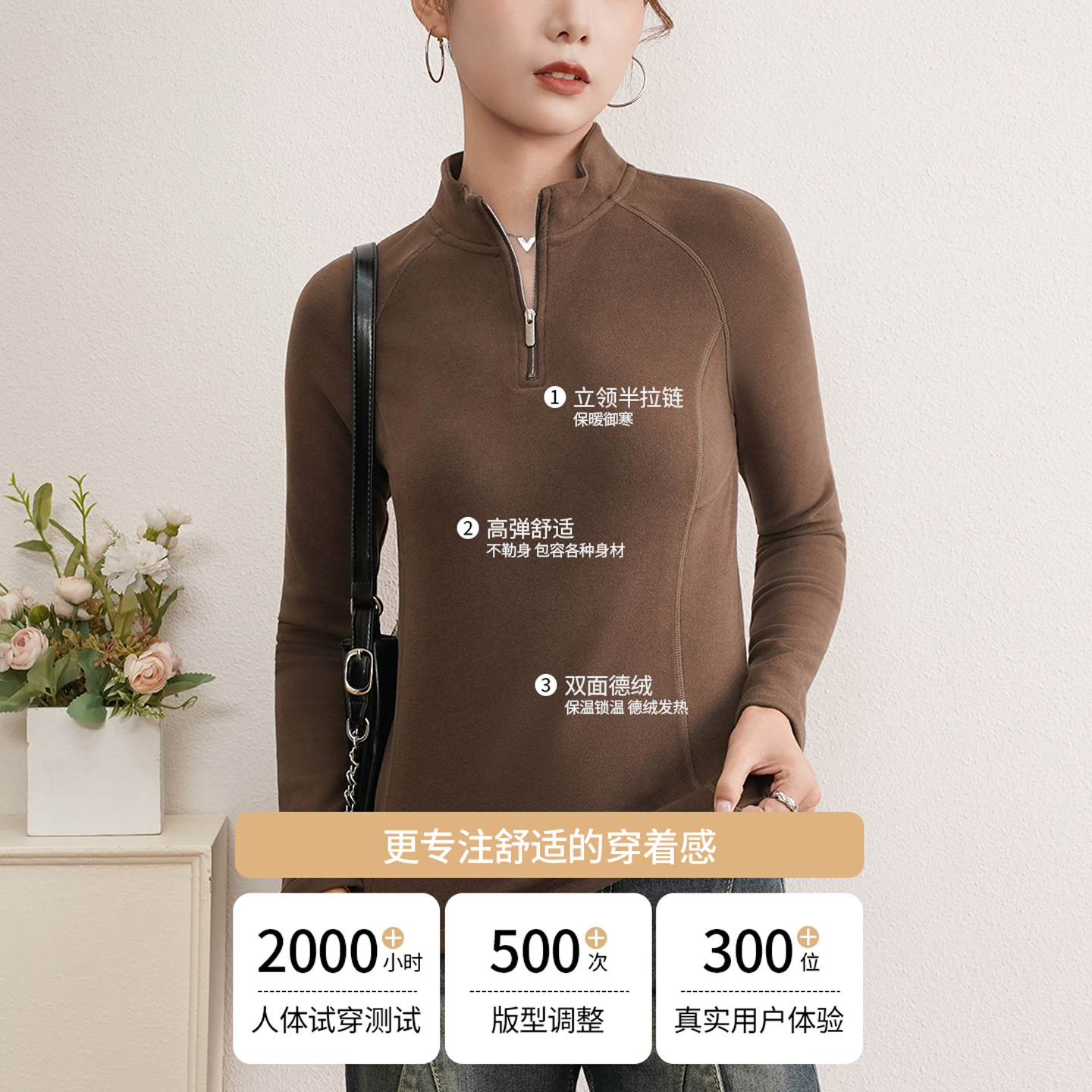 2025新款加绒加厚德绒磨毛保暖卫衣女运动立领冬半拉链长袖打底衫