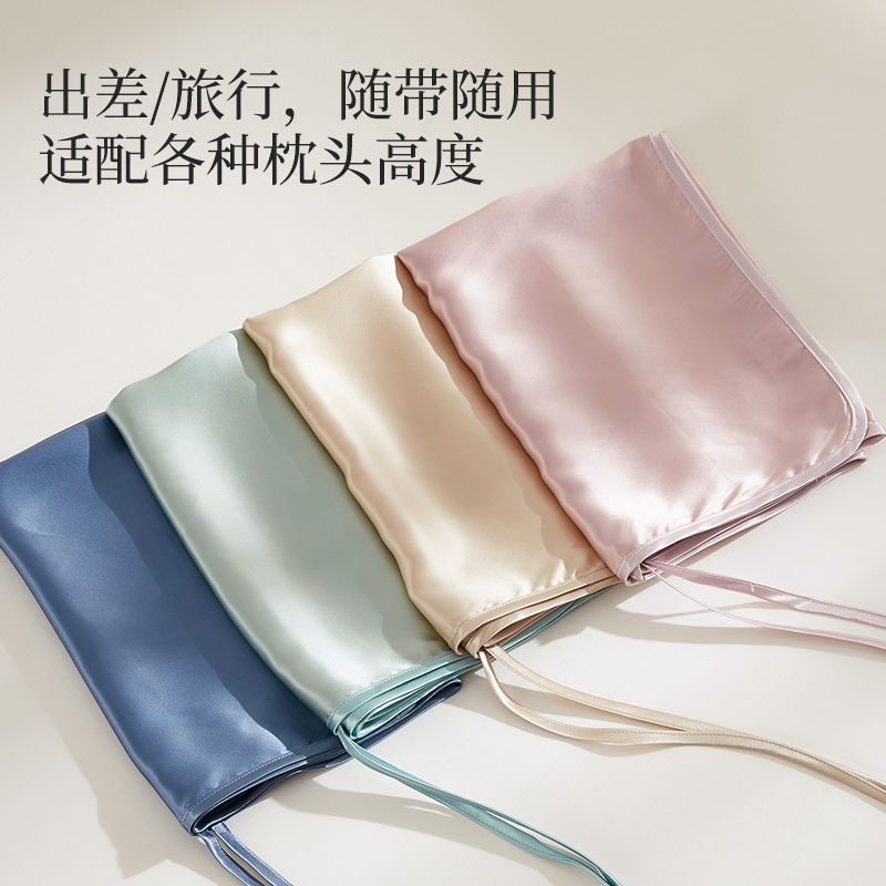 太湖雪真丝枕巾枕套桑蚕丝苏州丝绸细腻丝滑纯色枕头巾绑带