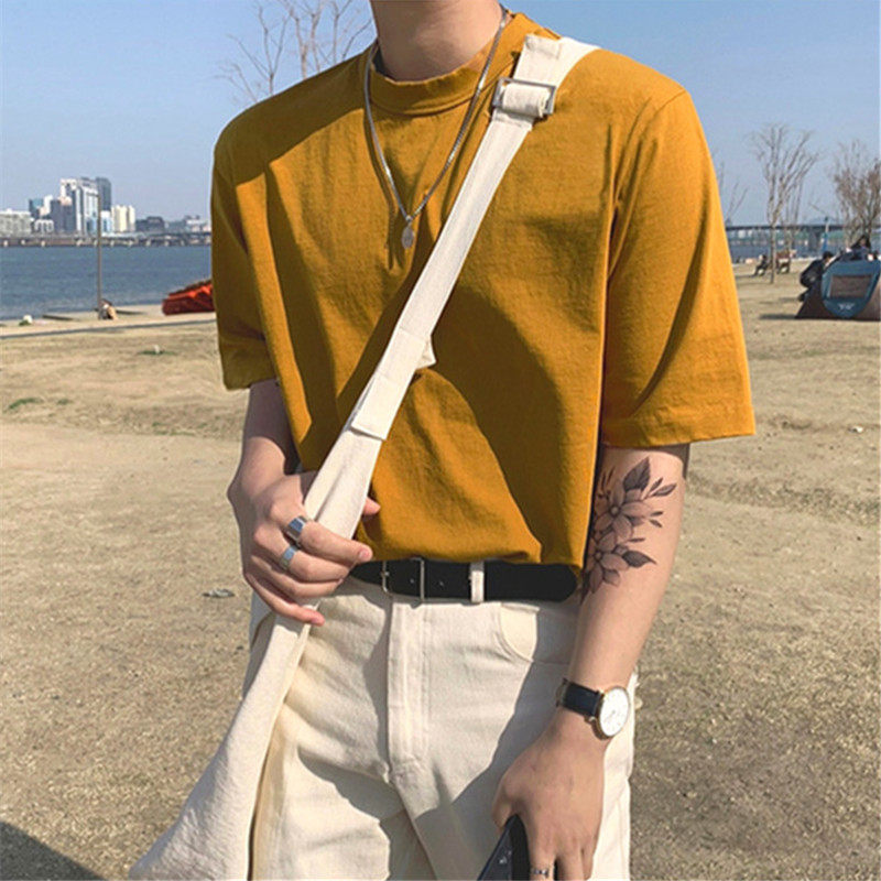 韩国INS同款纯色百搭五分袖宽松上衣半袖学生纯棉短袖T恤韩版潮流